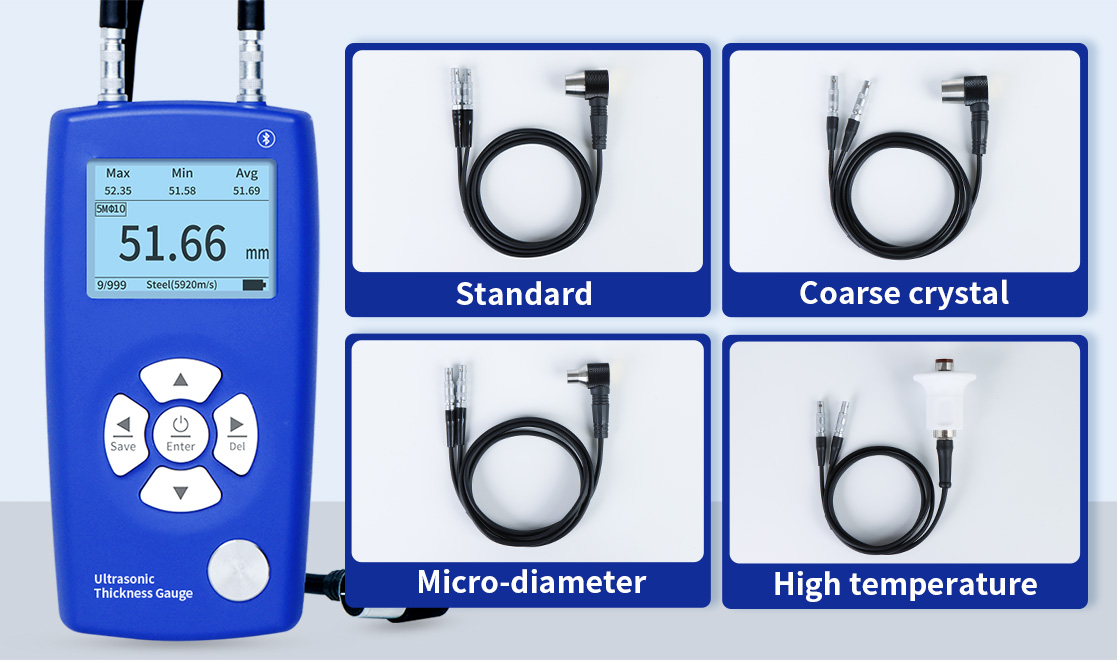 Suitable for measuring the thickness of metal plates, steel parts, pipes, ceramics, plastics, glass and any other material that conducts ultrasonic waves.
