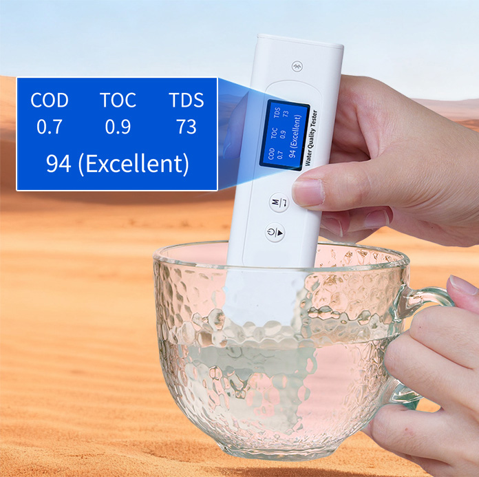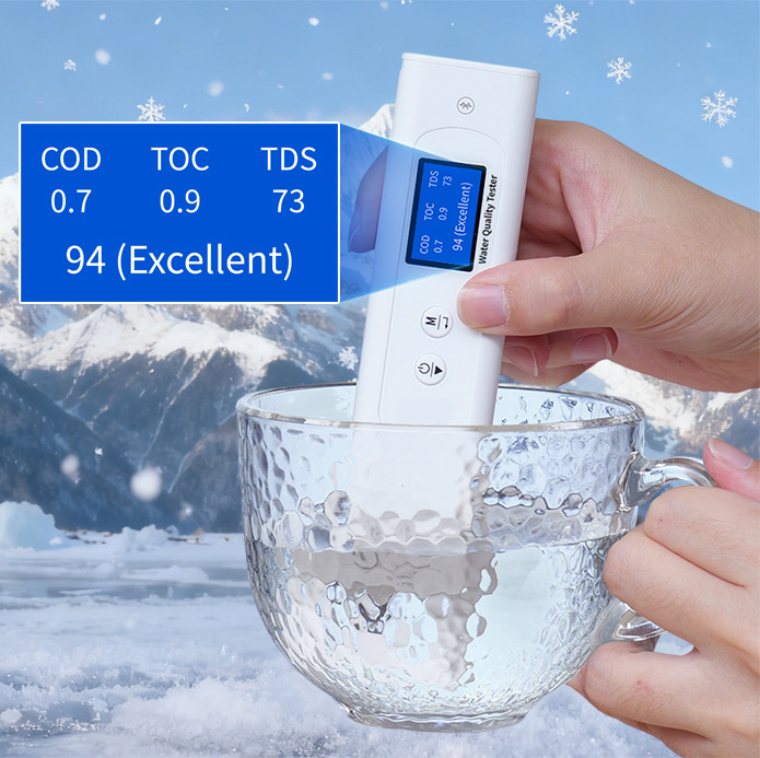 The device uses UV absorbance to measure COD, TOC and UV275, and uses electrical conductivity to calculate TDS, electrical conductivity (EC), salinity (SAL), general hardness (GH) and specific gravity (S.G.). 86311 provides intelligent water-quality scoring, with backlight colors indicating four grades: Excellent, Good, Fair, and Poor. It also features automatic temperature compensation to ensure consistent repeatability and accuracy across different environments.