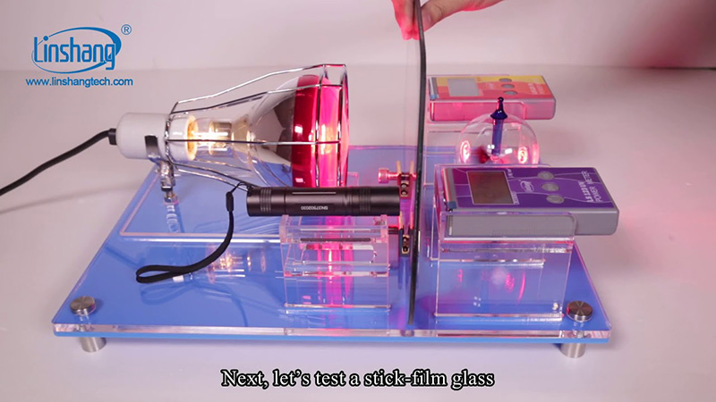 Linshang SK1250 Solar Film Insulation Display Stand is also called insulation film transmission kit and energy-saving glass display stand, which can be used to demonstrate the thermal insulation and UV blocking performance of various materials such as solar film, insulation film, energy-saving glass. The instrument irradiates the material under test with genuine Philips infrared lights and ultraviolet flashlights to simulate the infrared and ultraviolet rays in sunlight, and then displays the good barrier performance of the material under test through a power meter and a light intensity magic mirror. The data is intuitive and easy to understand. Special aluminum case, convenient for users to carry out.